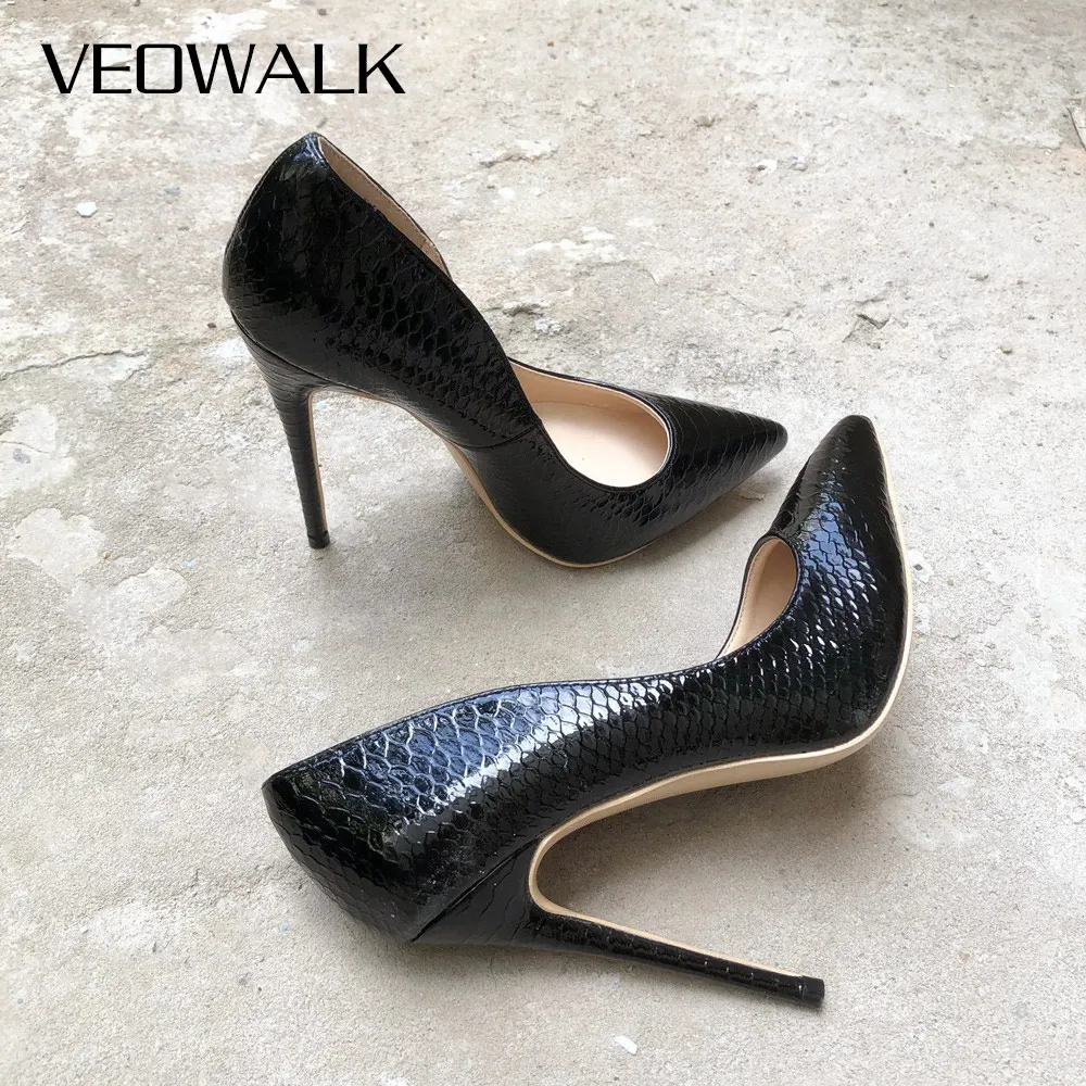 Get Veowalk Embossed Crocodile Women Sexy Pointed Toe High Heels Ladies Fashion Stilettos Pumps Slip On